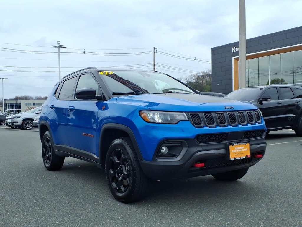 SUN AND SOUND GROUP Premium Alpine Speaker System, Power Front/Fixed Rear Full Sunroof, TRAILER TOW GROUP 4 Pin Wiring Harness, Class III Receiver Hitch, TRANSMISSION: 8-SPEED AUTOMATIC 8F30 (STD), ENGINE: 2.0L I4 DOHC DI TURBO W/ESS (STD). Jeep Trailhawk with Laser Blue Pearlcoat exterior and Ruby Red/Black interior features a 4 Cylinder Engine with 200 HP at 5000 RPM*. Non-Smoker vehicle, Clean CARFAX report! JEEP CERTIFIED